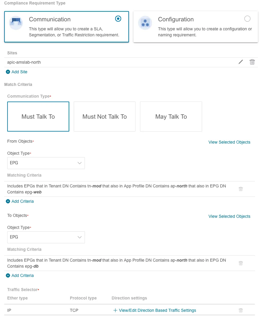 In this example, Endpoint Group (EPG) web and db must be able to communicate: