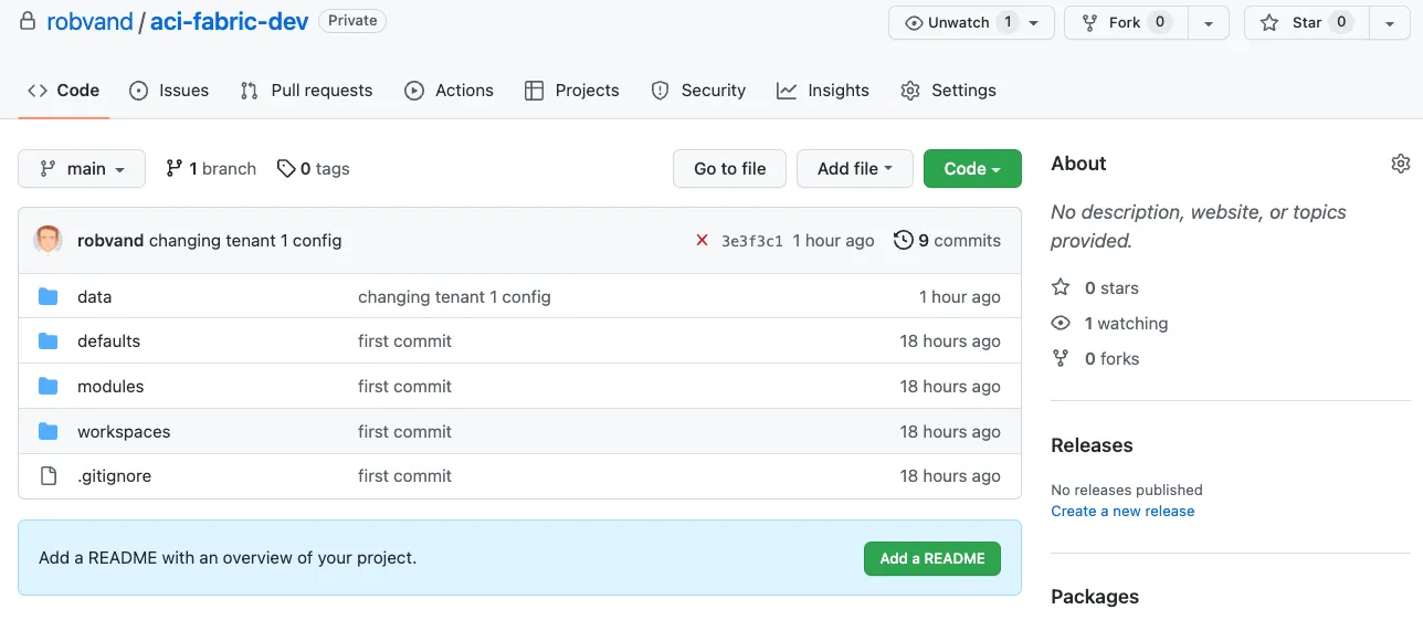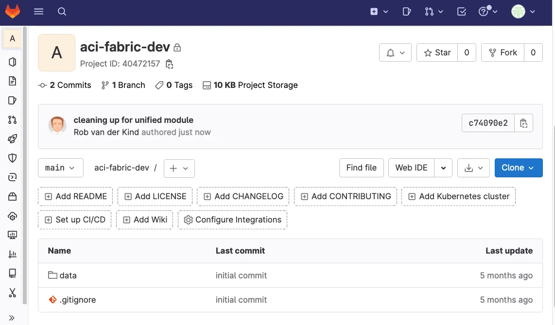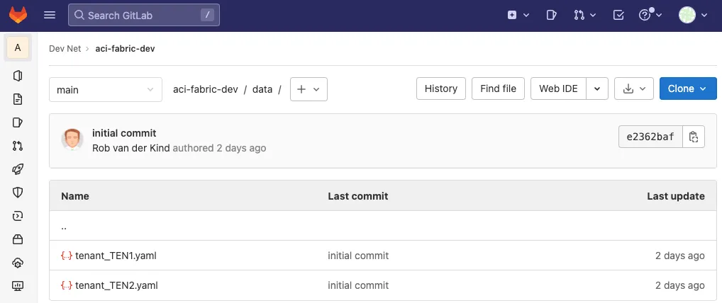cat tenant_a_vrf_b.yaml---apic: tenants: - name: tenant-a managed: false vrfs: - name: vrf-bUsing Gitlab