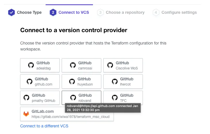 In step 2 of the wizard, select your VCS provider: