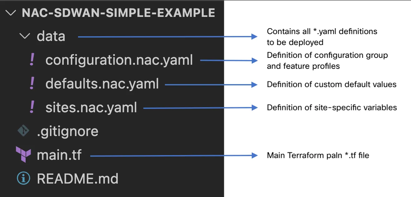 git clone https://github.com/netascode/nac-sdwan-simple-example.gitOpen the folder in your preferred editor / IDE.