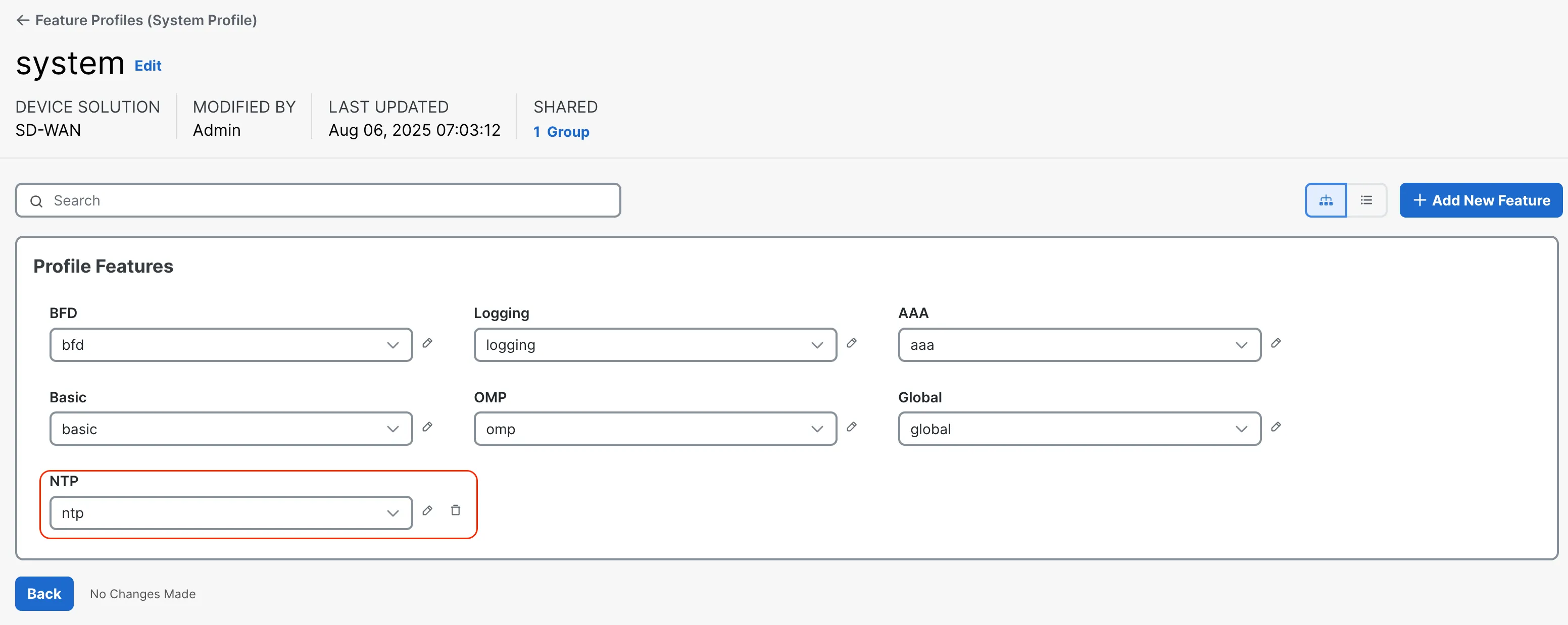 Navigate to Catalyst SD-WAN Manager and make sure that the ntp feature was added to the system feature profile.