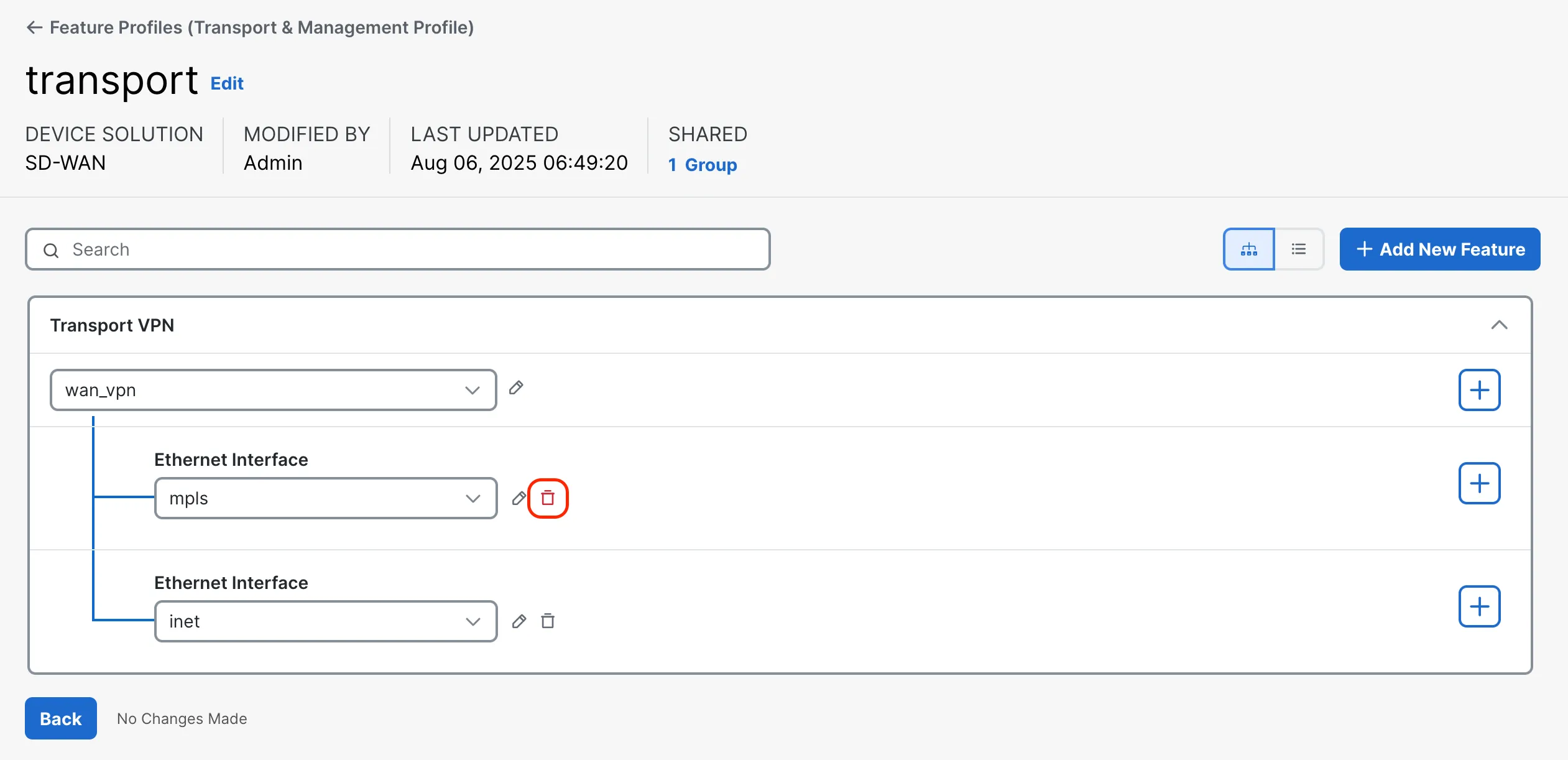 Navigate to SD-WAN Manager and make sure that configuration group branches and the associated feature profiles have been removed.
